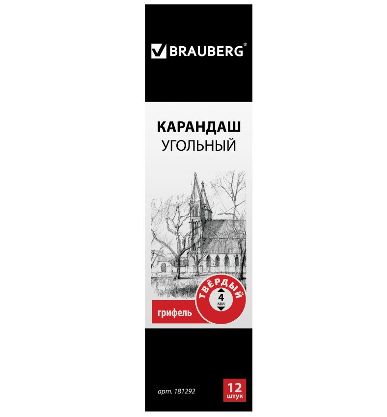 Карандаш угольный, черный "Art Medium" круглый, заточенный Brauberg