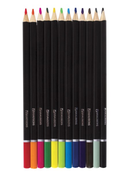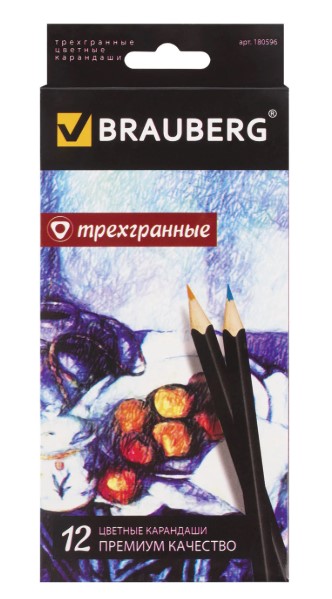 Карандаши цветные, 12 цветов, трехгранные, черный корпус BRAUBERG "Artist line"