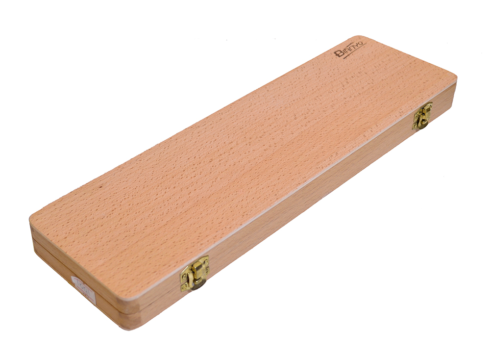 Кисточки упакованы в деревянный футляр, плотно закреплены на резинке к деревянной панели, благодаря чему кисточки никогда не потеряются и не сломаются. Резинка эластичная, достать их из футляра не составит труда, и также удобно возвращаются на место. При желании панель можно убрать. Футляр плотно закрывается на два металлических замка.