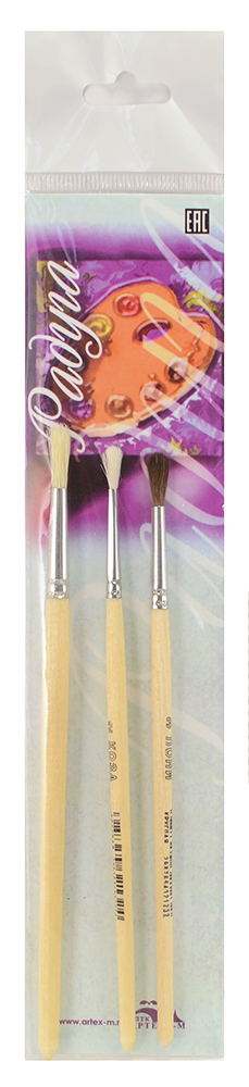 Набор из трех круглых кистей из волоса пони, белки и щетины. Предназначены для живописи акварельными и гуашевыми красками, для детского творчества.