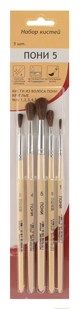 Набор из трех круглых кистей из волоса пони, белки и щетины. Предназначены для живописи акварельными и гуашевыми красками, для детского творчества.