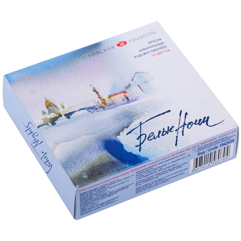 Акварель 12 цветов "Белые ночи" 2,5 мл, художественная, кювет