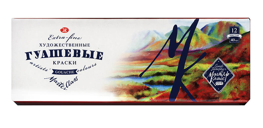 Гуашь Мастер-Класс отличает превосходная укрывистость и плотность красочного слоя, приобретающего матовую бархатистость после высыхания. Связующее гуаши производится на основе гуммиарабика.