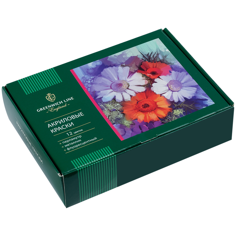 Краски акриловые 12 цветов 20 мл металлик, перламутр, флуоресцентные, блестки Greenwich Line 235668