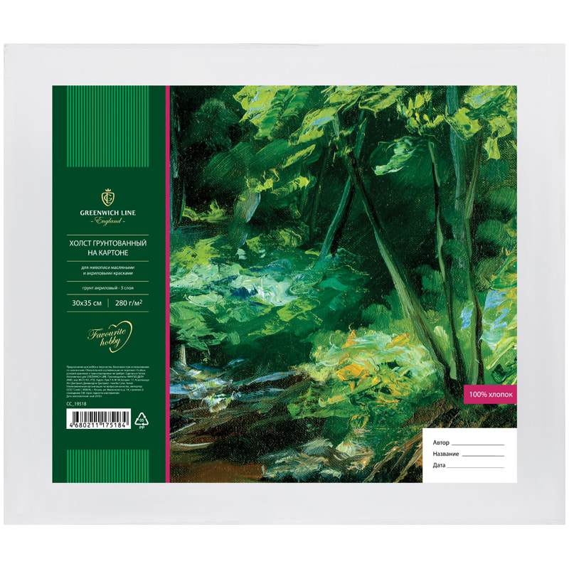 Грунтованный холст на картоне Greenwich Line предназначен для работы масляными, темперными и акриловыми красками. Рекомендуется для использования как начинающими художниками, так и учениками и студентами художественных школ.
