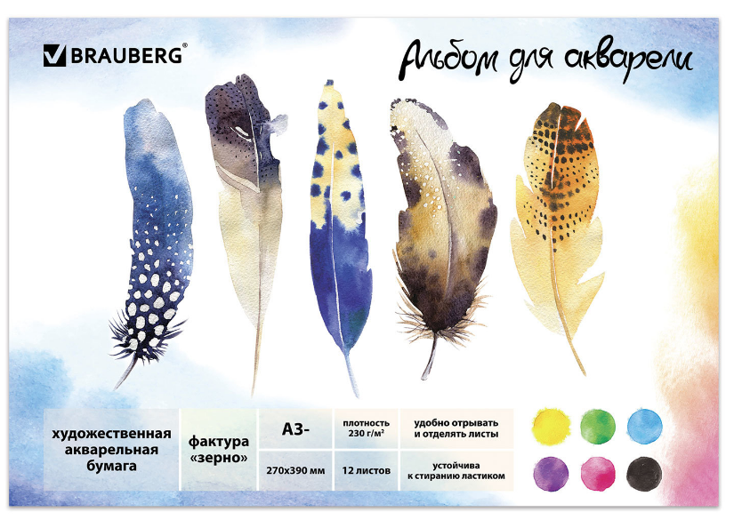 Альбом для акварели, зерно, белая бумага, А3, 270х390 мм, 230 г/м2, 12 л, склейка, BRAUBERG ART CLASSIC, 128962