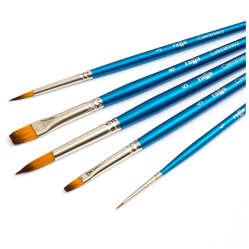 Кисти набор 5 штук ГАММА синтетика, круглые №1,3,5, плоская №5,8