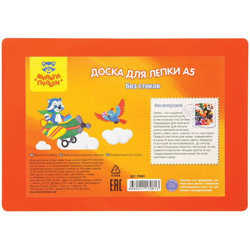 Доски для лепки Мульти-Пульти изготовлены из высококачественной пластмассы. Формат А5. Позволяют детям заниматься лепкой, надежно предохраняя мебель от загрязнения. Для детей старше 3-х лет.