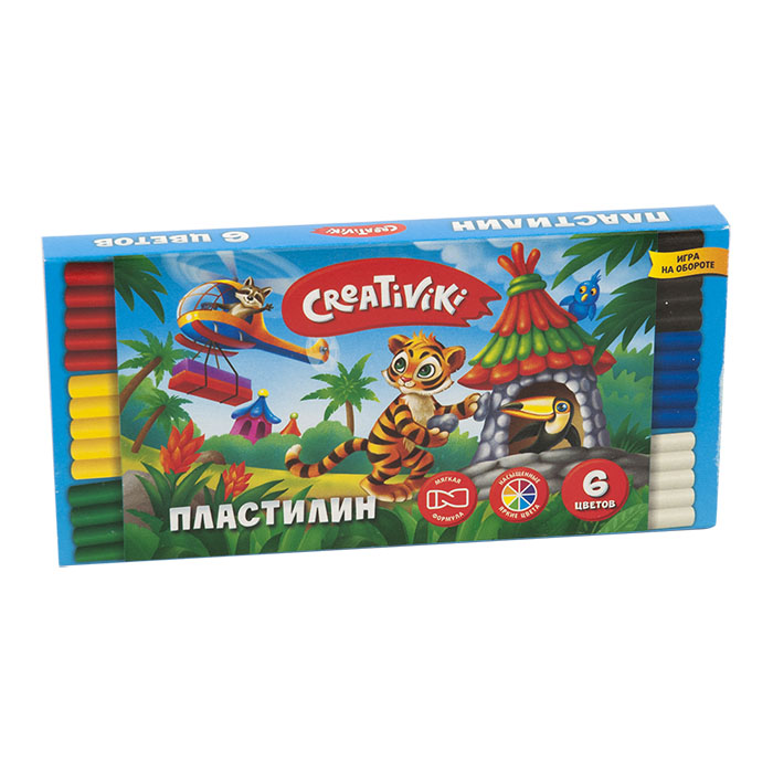 Пластилин 6 цветов, 90 грамм, стек Creativiki 163628