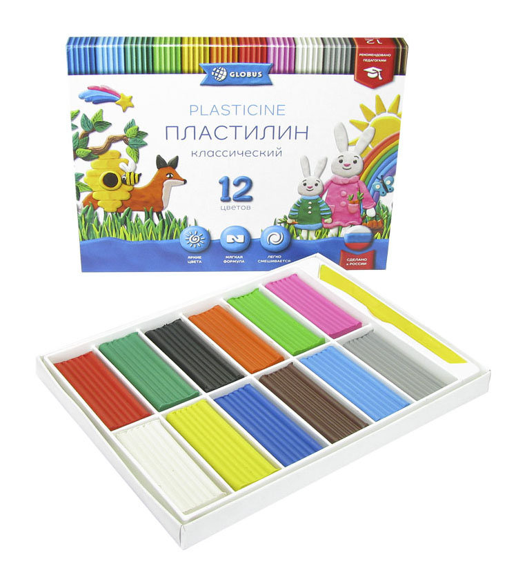 Пластилин GLOBUS КЛАССИЧЕСКИЙ — популярный материал для творчества. Он быстро принимает заданную форму, может использоваться для изготовления фигурок и картин. Не оставляет жирных пятен, не имеет неприятного запаха и отличается безопасным составом. Его можно купить для домашних поделок, уроков труда в школе, занятий в студии изобразительного искусства, создания моделей и макетов на профессиональном уровне.