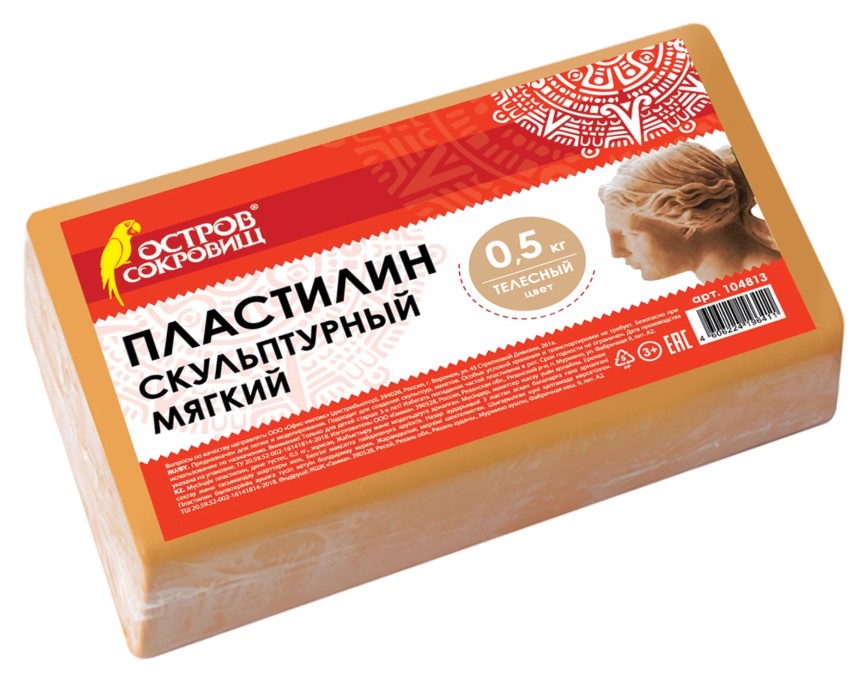 Пластилин скульптурный ОСТРОВ СОКРОВИЩ, телесный, 0,5 кг, мягкий, 104813