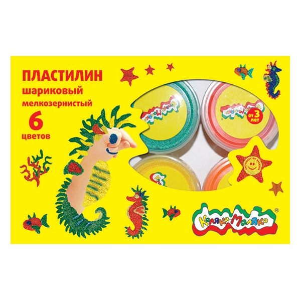 Пластилин шариковый *Каляка-Маляка* мелкозернистый 6 цветов, 33 гр.