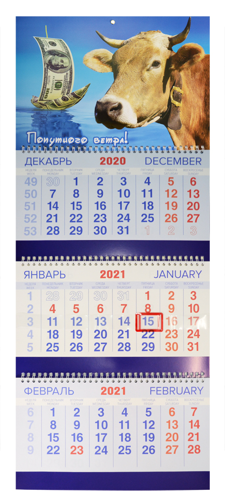 Календарь 2021 трио "Символ года. Попутного ветра!" 210*300 мм*
