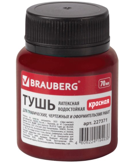 Тушь чертежная красная, 70 мл, водостойкая, латексная BRAUBERG