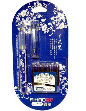Ручка перьевая AIHAO ВВ-127 с 6 картридж. "Цветы" синяя на блистере №20218*