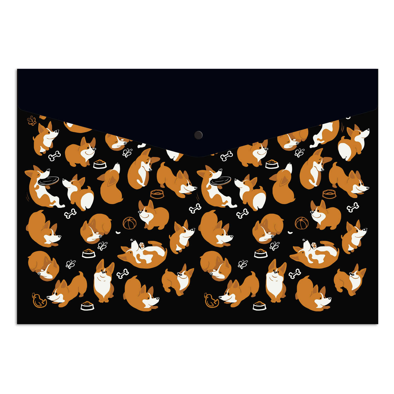 Папка-конверт на кнопке "КОРГИ", формат А4, пластиковая