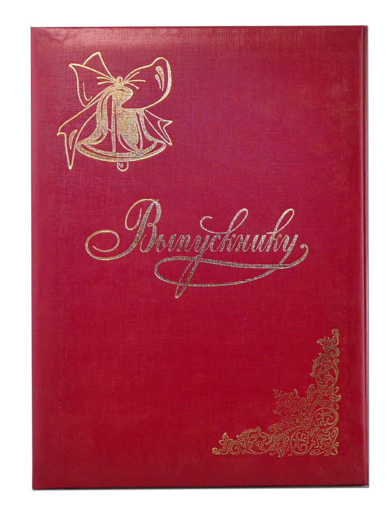 Форзацы изготовлены из плотной бумаги белого цвета. Надпись выполнена методом золотого тиснения. Такая папка станет отличным аксессуаром для хранения выпускных фотографий и напутственных слов.