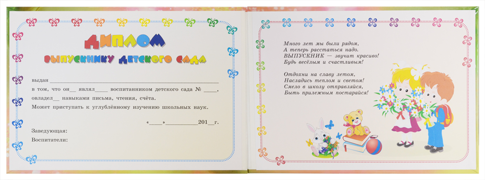 - На правом развороте - красочное и изображение и поздравление в стихотворной форме