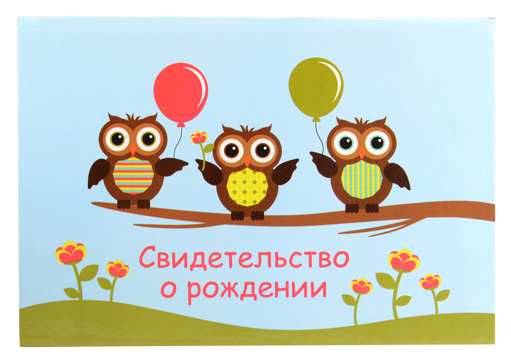 Обложка для свидетельства о рождении А5 "Совы с шарами" с файлом