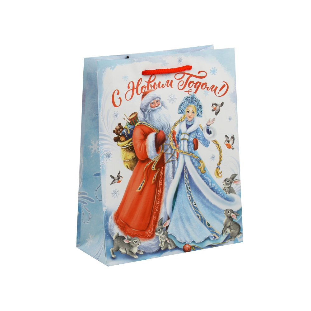 Красивый подарочный пакет с ручками-веревками. Пакет сделан из ламинированной бумаги.