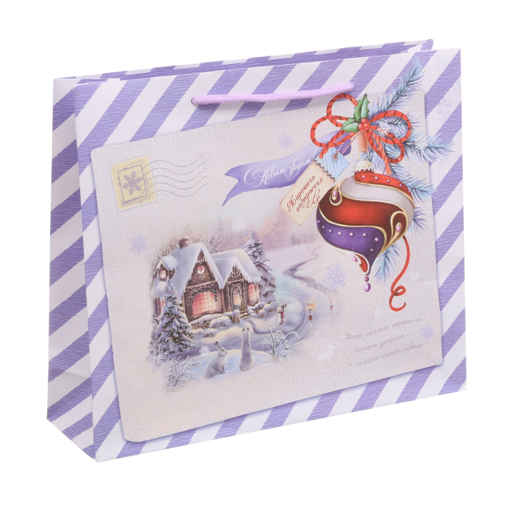 Красивый подарочный пакет с ручками-веревками. Пакет сделан из ламинированной бумаги.