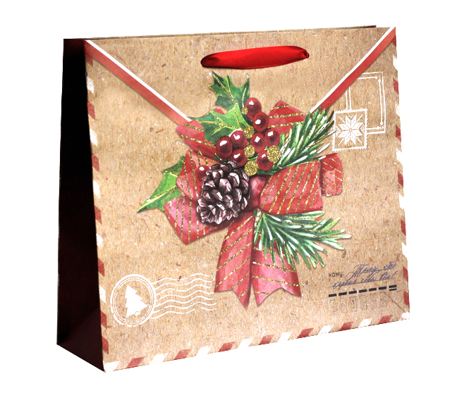 Красивый подарочный пакет с удобными ручками-лентами. Пакет сделан из крафтовой бумаги.