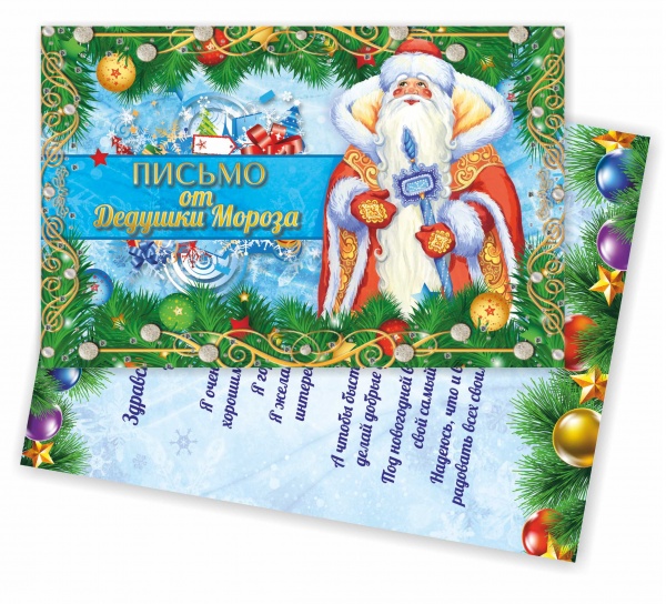 - В письме содержится новогоднее поздравление от Деда Мороза в стихотворной форме.