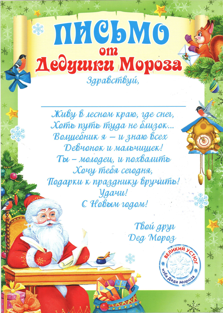 Новый год - это праздник, который с нетерпением ждут все дети. Подарки, поздравления, письма с пожеланиями Деду Морозу. И как же замечательно, когда в почтовом ящике лежит письмо от Деда Мороза, адресованное лично ребенку. В письме содержится новогоднее поздравление от Деда Мороза в стихотворной форме.