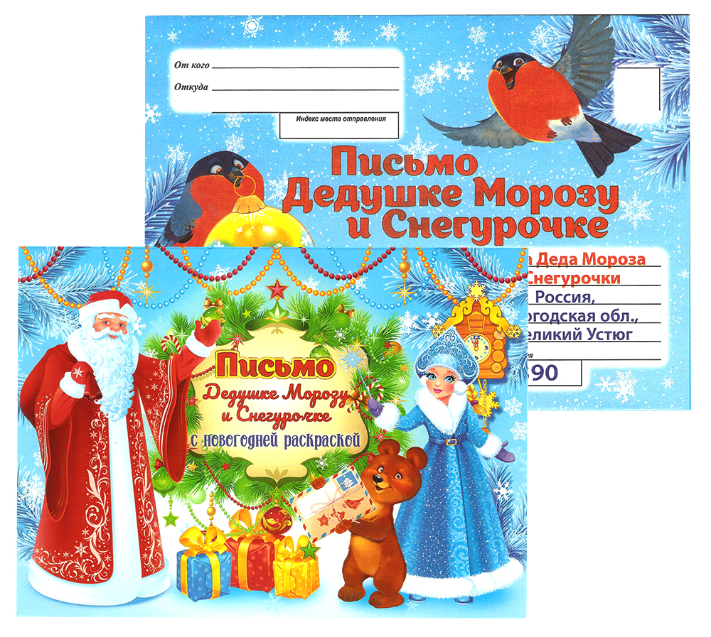 Письмо Дедушке Морозу и Снегурочке, конверт, 10 штук 11.723*