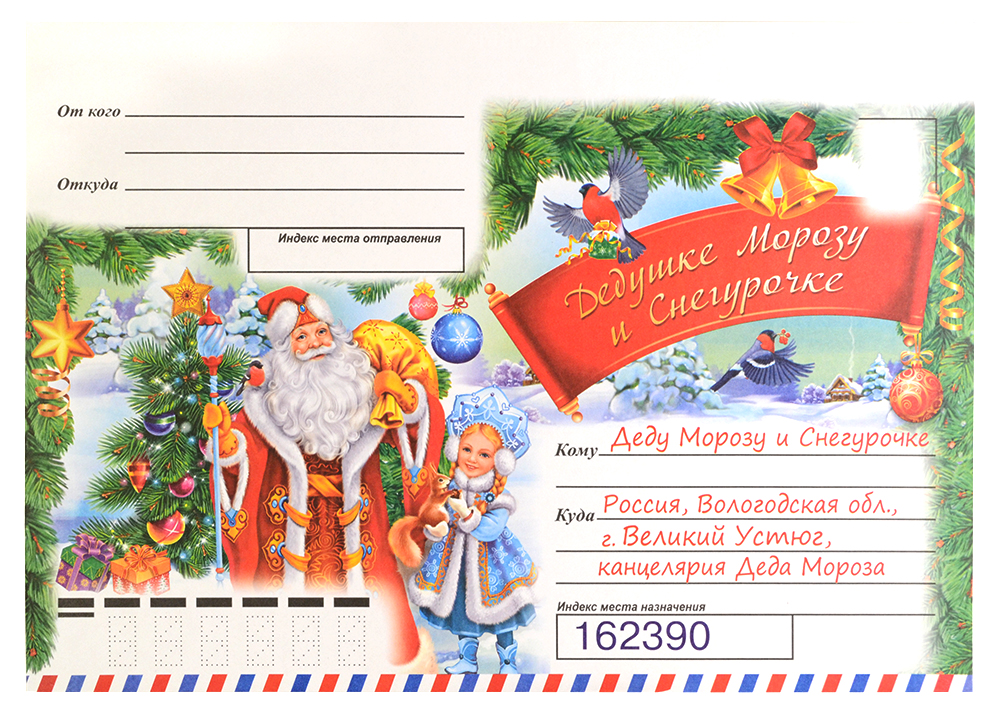 Письмо А4 Дедушке Морозу и Снегурочке + конверт, 10 штук 013.723