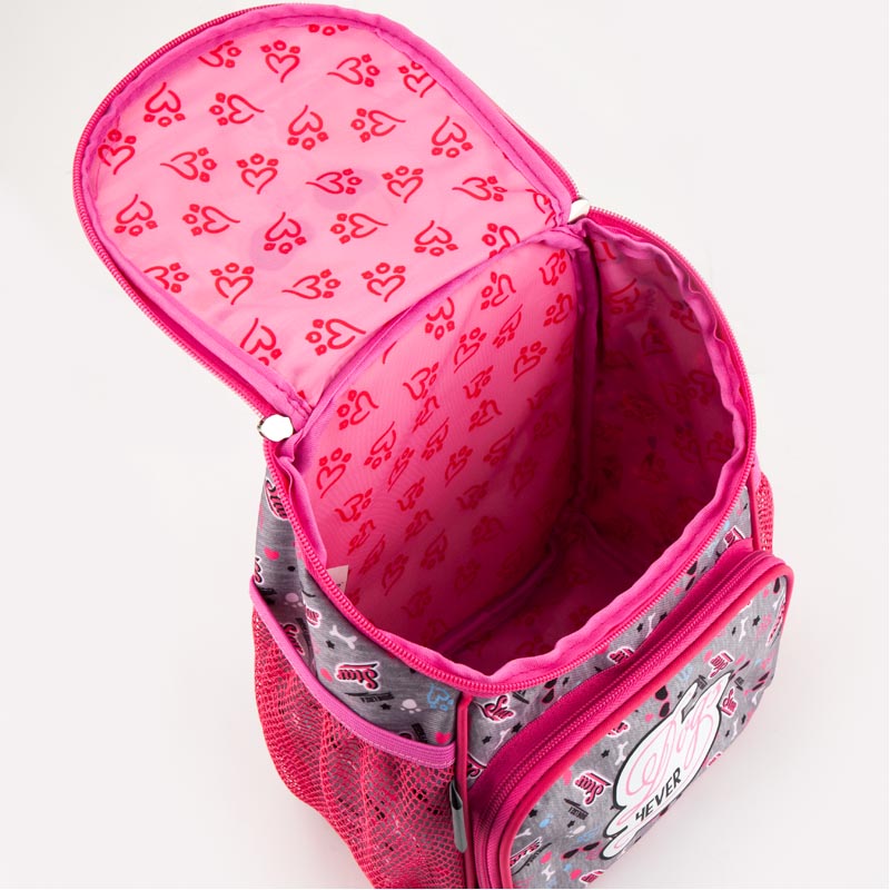 Рюкзак состоит из отделения, переднего и 2 боковых карманов, куда помещается бутылка с водой. Имеет мягкую ручку-петлю. Усиленное дно легко моется и сохраняет устойчивость рюкзака. Регулируемые лямки и небольшой вес, всего 240 г, делают рюкзак необременительным для ребенка. Светоотражающие элементы обеспечивают безопасность ребенка на дороге в темное время суток.