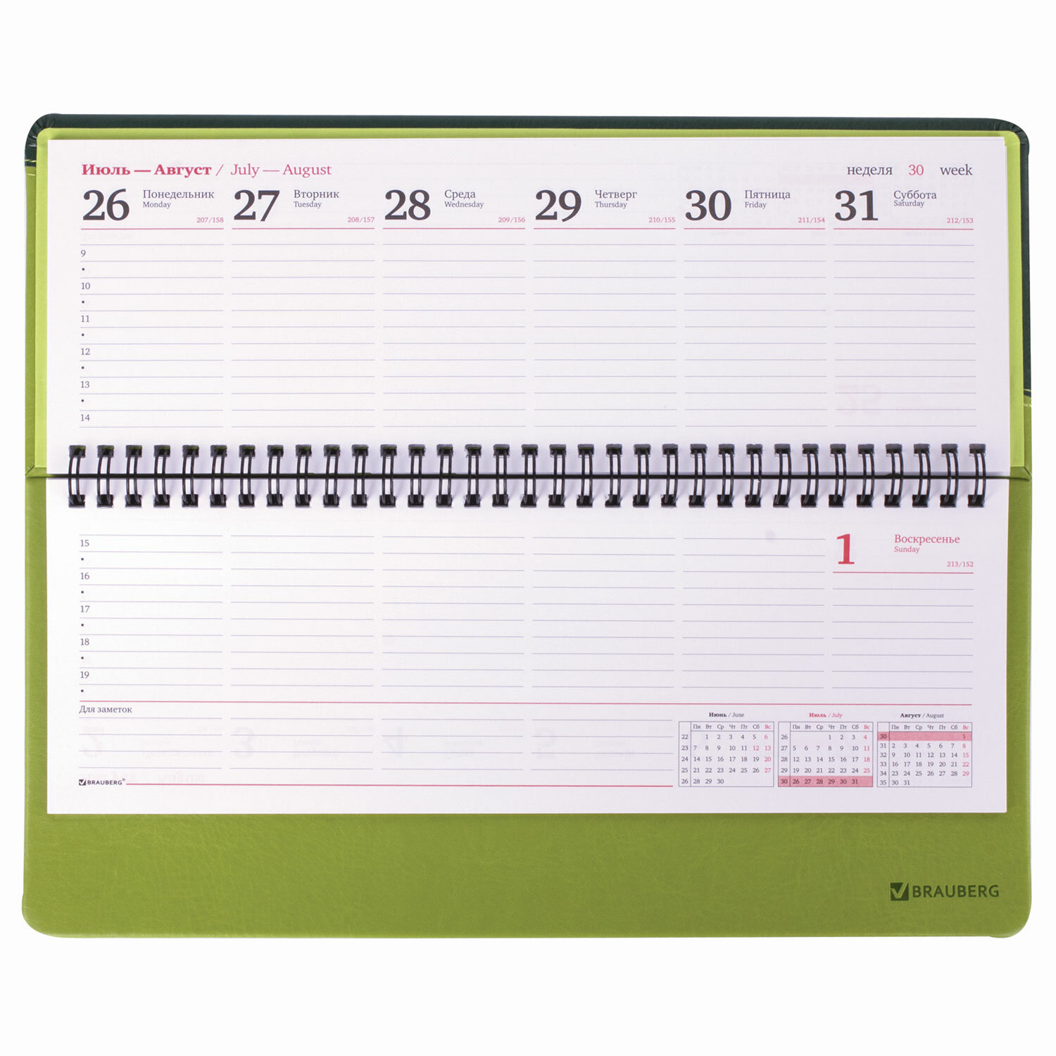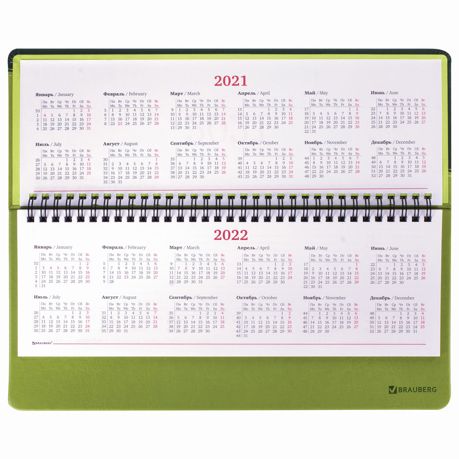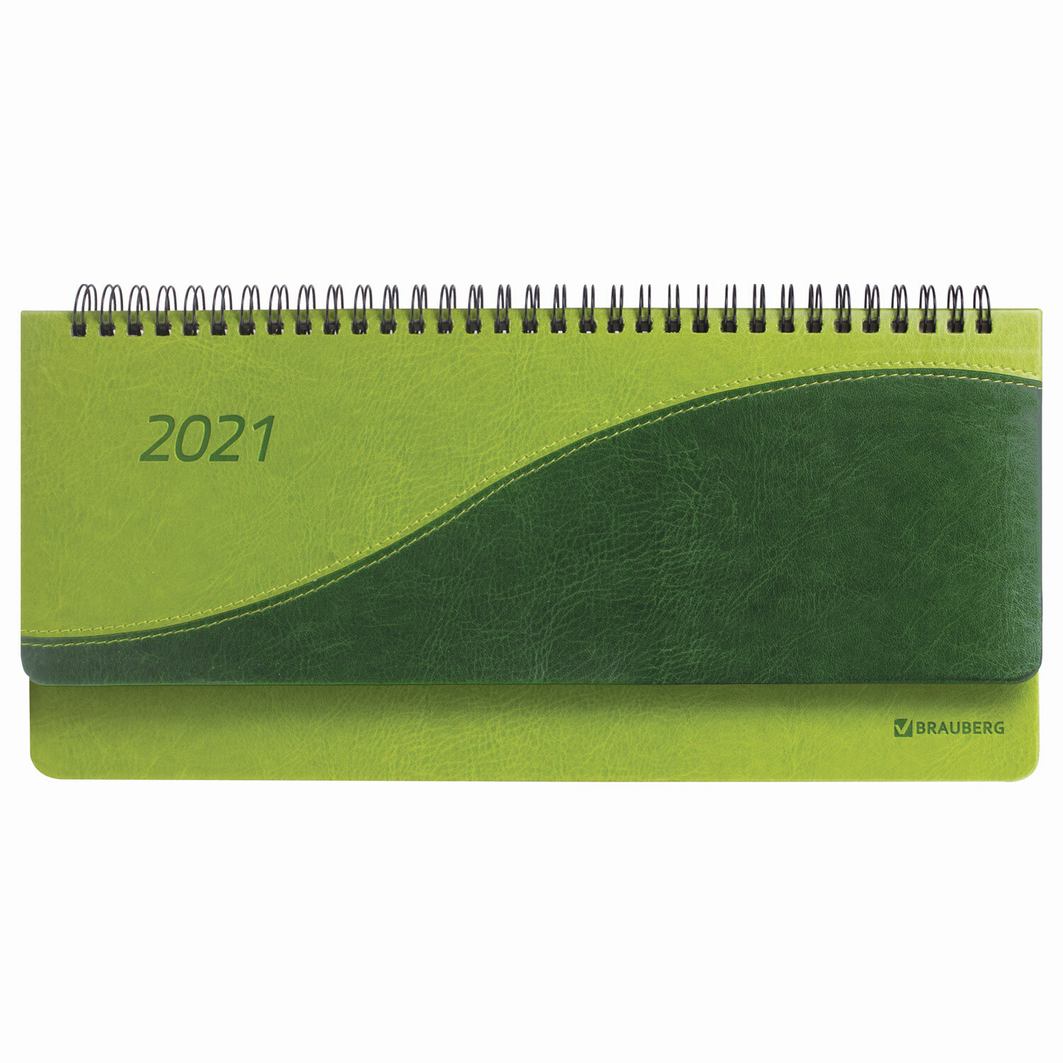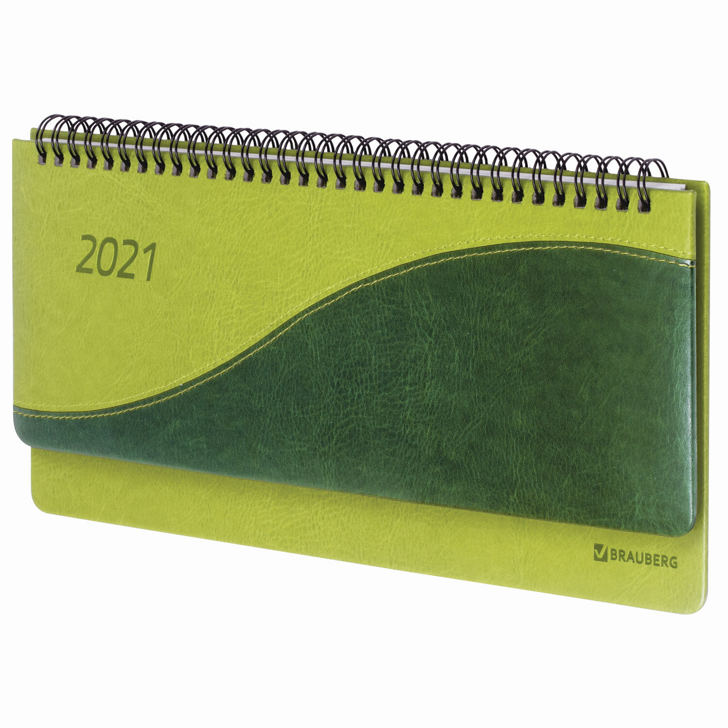 Планинг датированный 2021 BRAUBERG "Bond", кожзам, зеленый/салатовый 305*140 мм