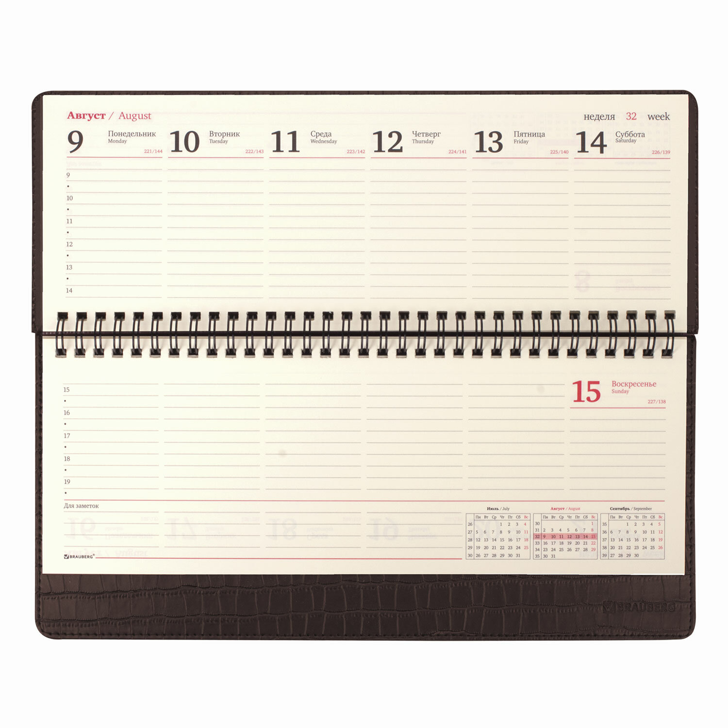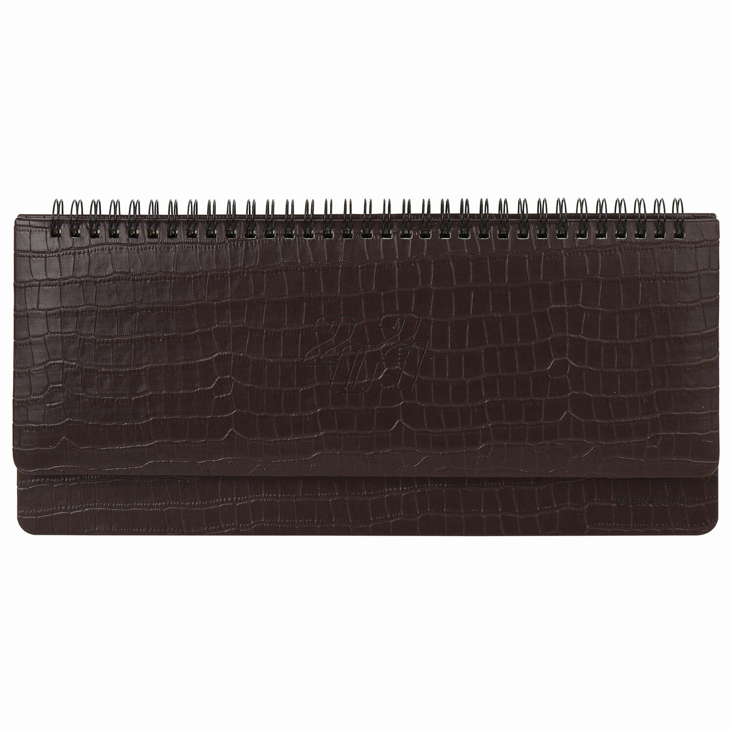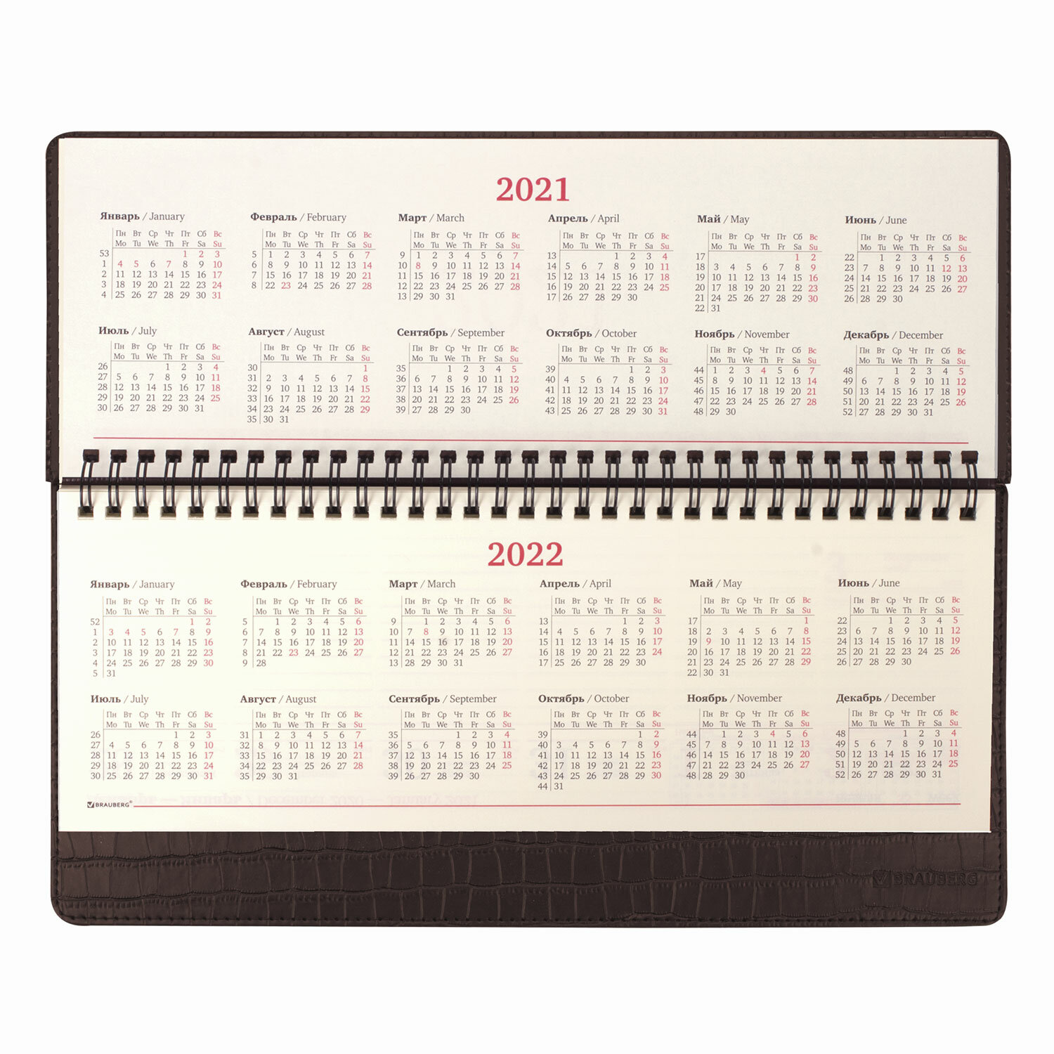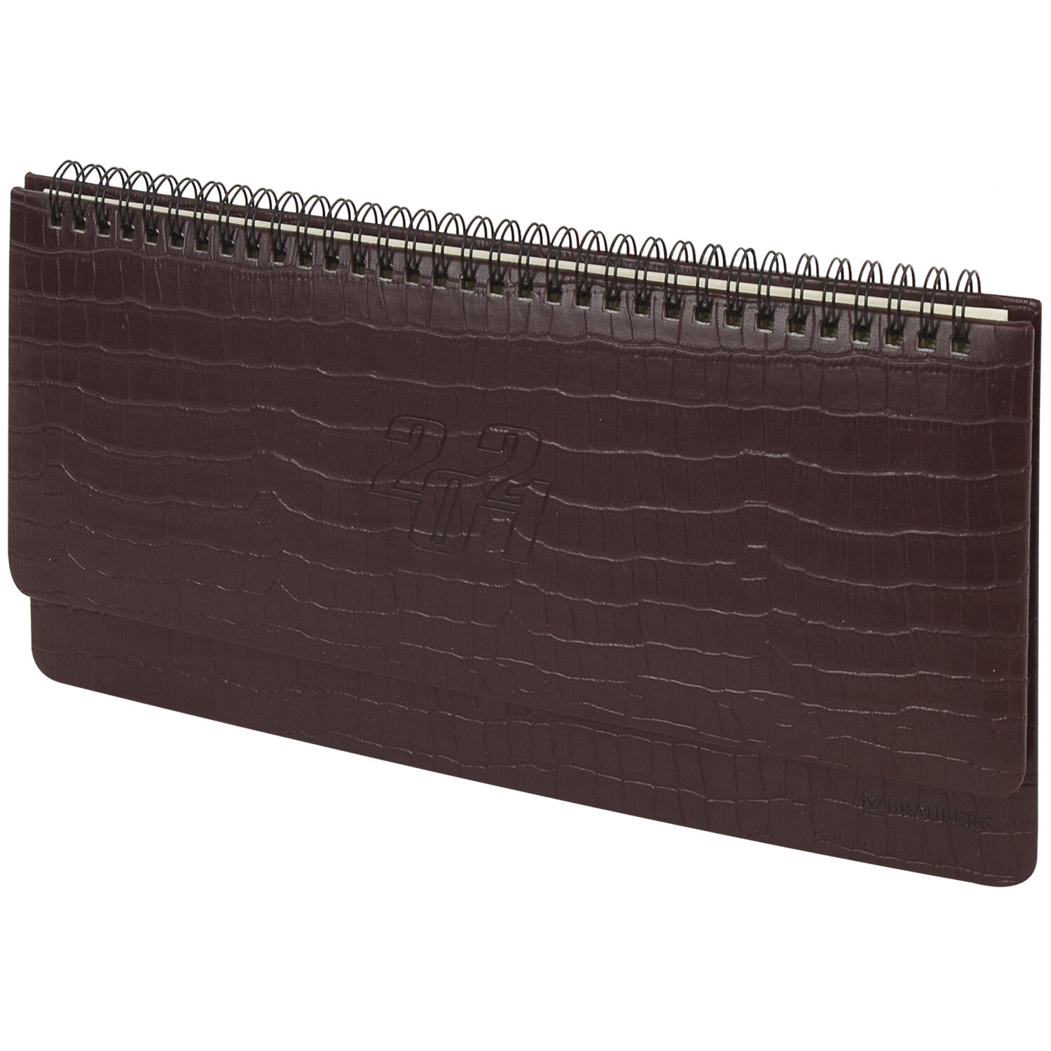 Планинг датированный 2021 BRAUBERG "Comodo", кожзам, коричневый 305*140 мм