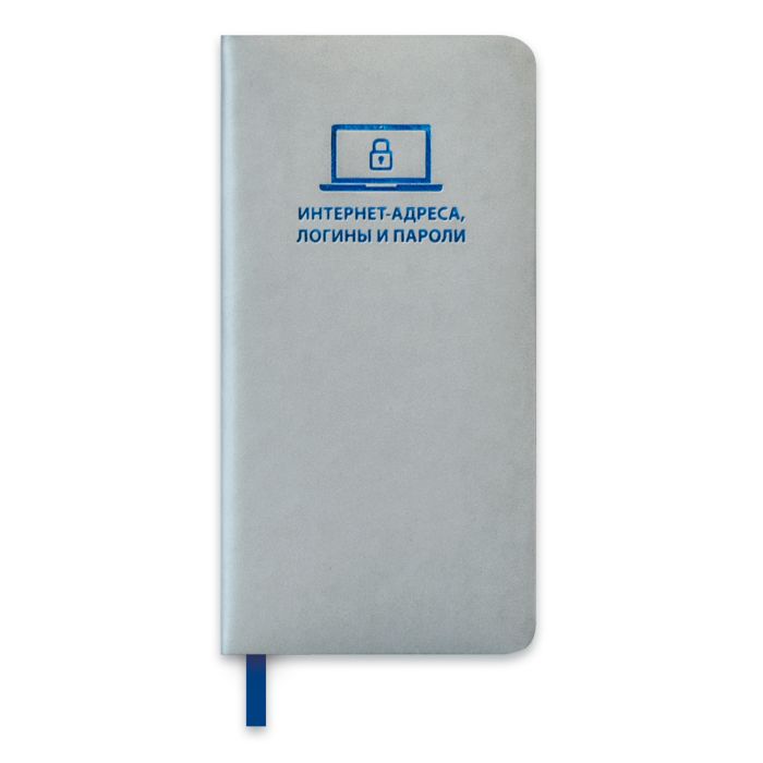 Записная книжка А7+ 56 листов "Софт тач" серебряная для интернет адресов, логина и паролей*