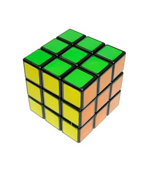 Каждый из девяти квадратов на каждой грани кубика окрашен в один из шести цветов. Повороты граней кубика позволяют переупорядочить цветные квадраты множеством различных способов.