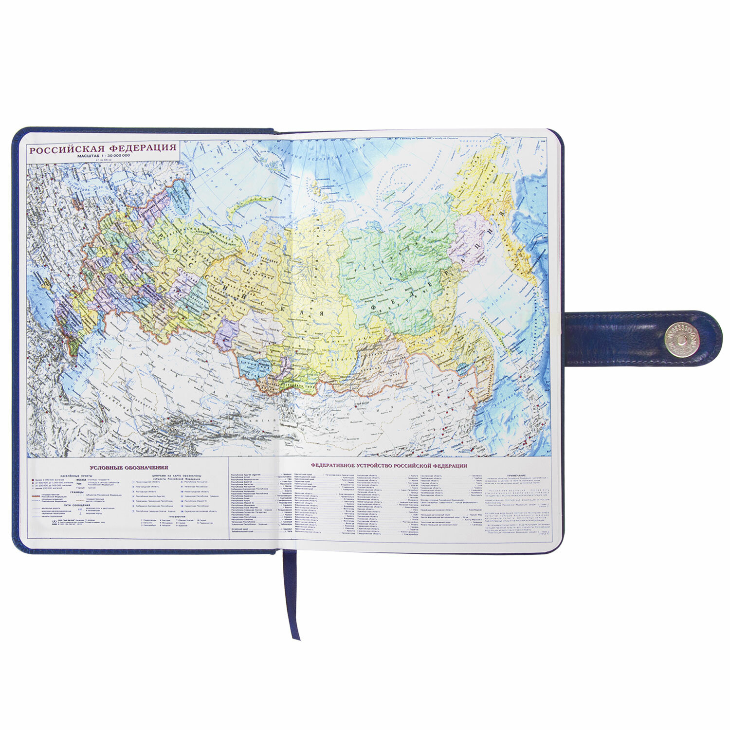 Материал обложки подходит для горячего тиснения. Форзац ежедневника представлен картами мира и России. Дополнением является закладка-ляссе, с помощью которой при необходимости можно быстро открыть ежедневник на нужной странице. Помимо прочего ежедневник снабжен обширным справочным материалом.
