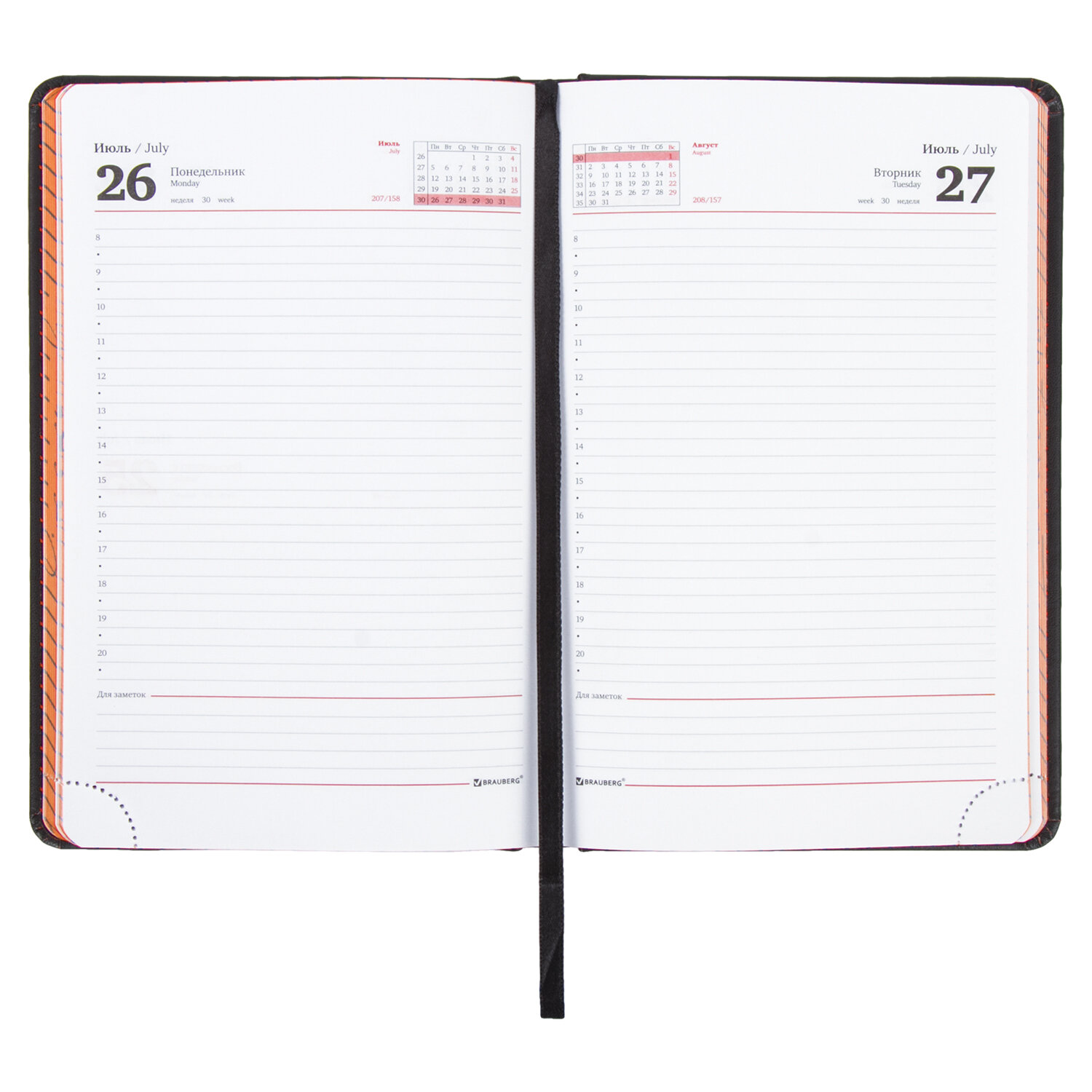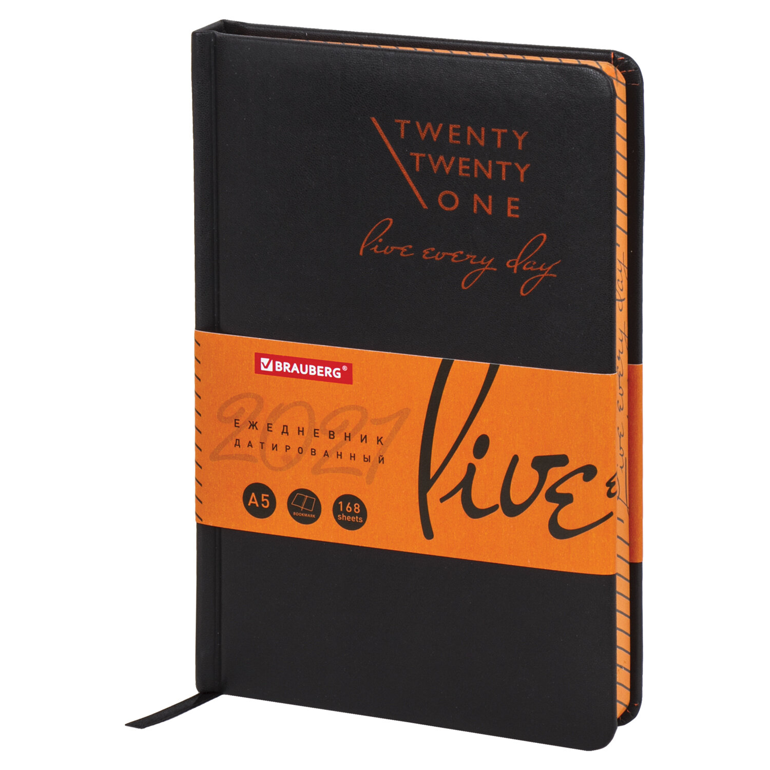 Ежедневник датированный 2021 А5 BRAUBERG "Chameleon", кожзам, черный/оранжевый,138*213 мм*
