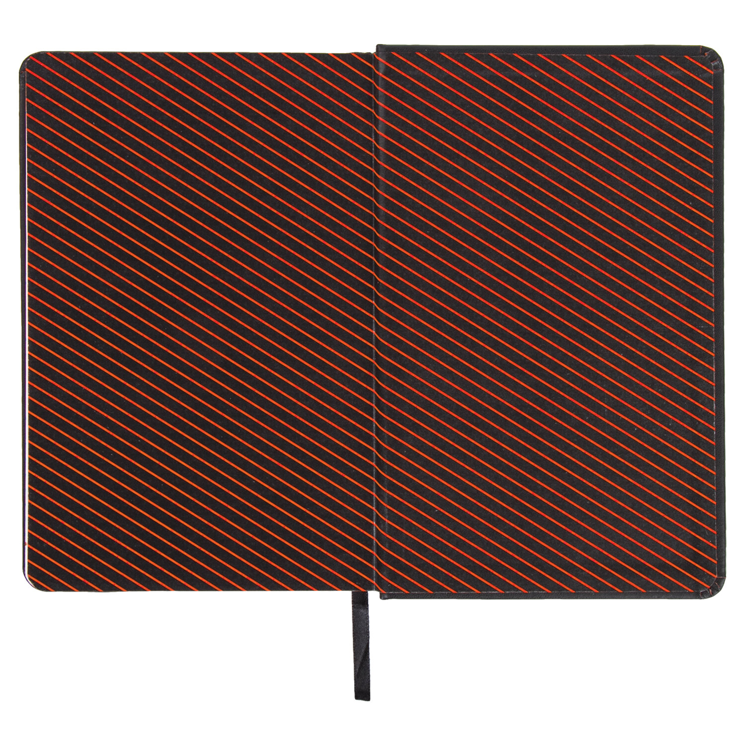Материал обложки подходит для горячего тиснения и при лазерной гравировке меняет цвет на оранжевый. Срез ежедневника окрашен в цвет термотиснения, а форзац в цвет обложки, что придает ему особый шарм. Дополнением является закладка-ляссе, с помощью которой при необходимости можно быстро открыть ежедневник на нужной странице. Помимо прочего ежедневник снабжен обширным справочным материалом.
