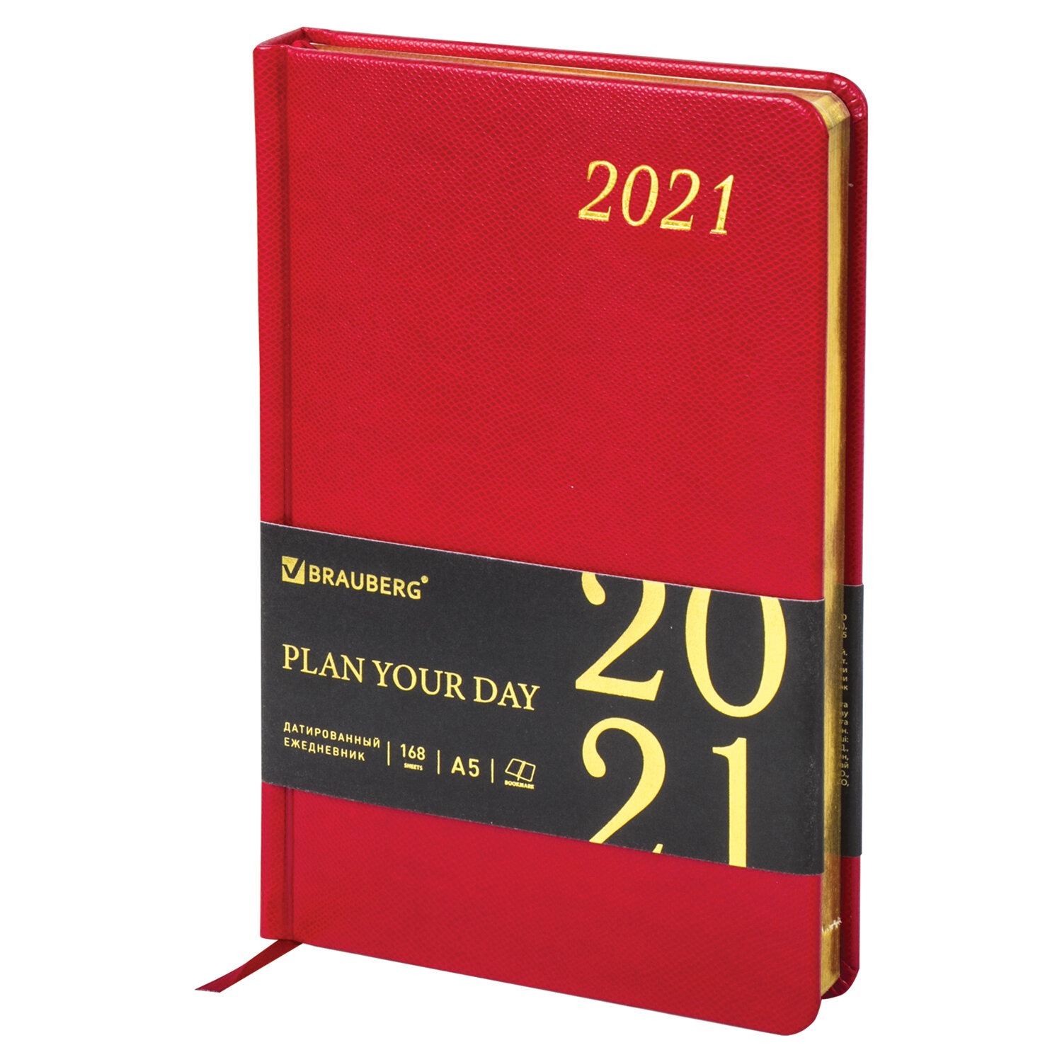 Ежедневник датированный 2021 А5 BRAUBERG "Iguana", кожзам, красный, 138*213 мм*