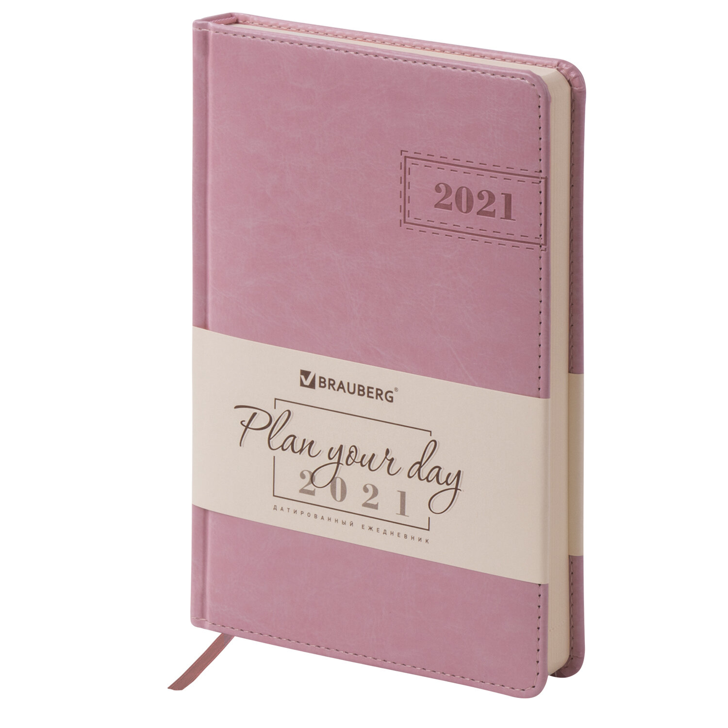 Ежедневник датированный 2021 А5 BRAUBERG "Imperial", кожзам, розовый, 138*213 мм*
