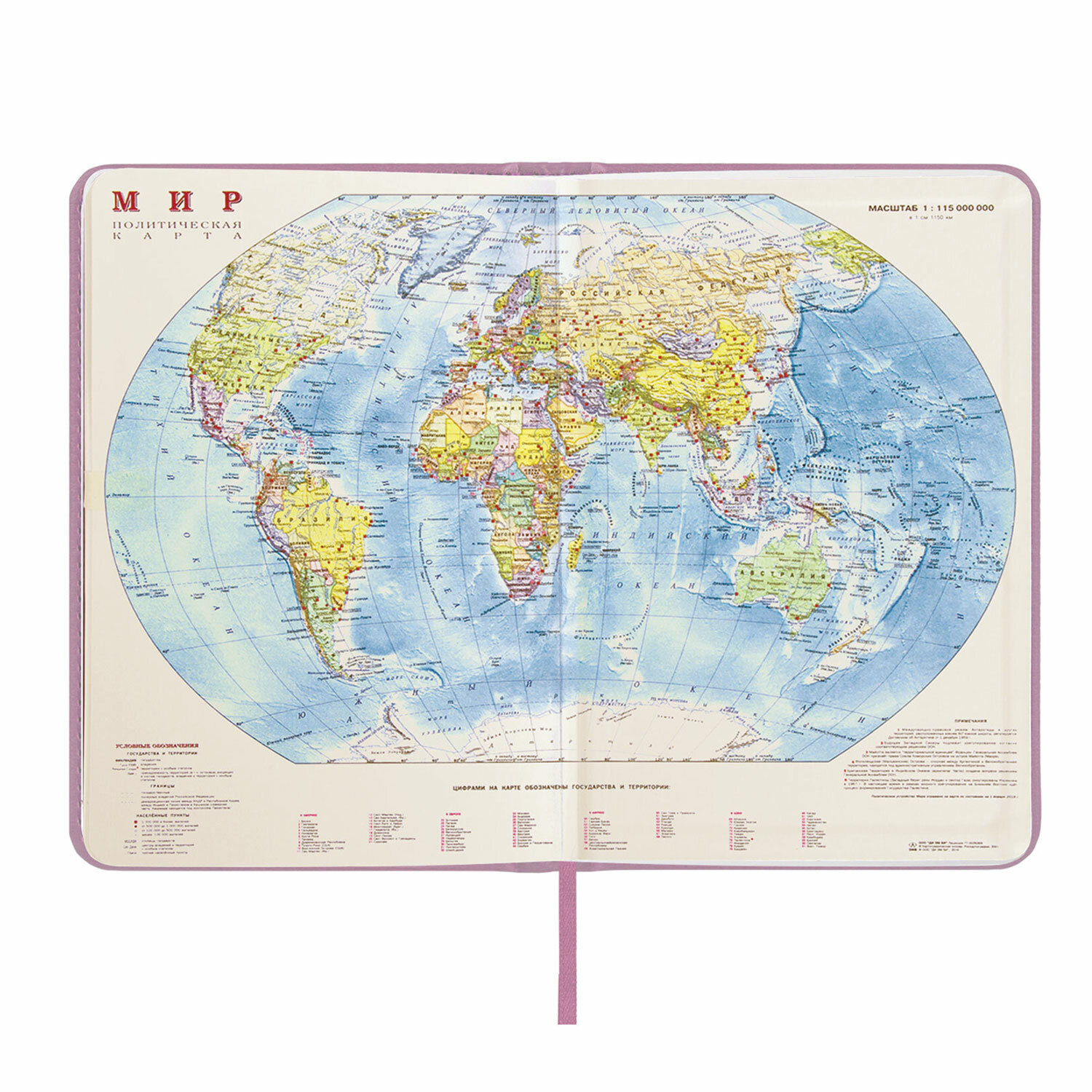 Материал обложки подходит для горячего тиснения. Форзац ежедневника представлен картами мира и России. Дополнением является закладка-ляссе, с помощью которой при необходимости можно быстро открыть ежедневник на нужной странице. Помимо прочего ежедневник снабжен обширным справочным материалом.