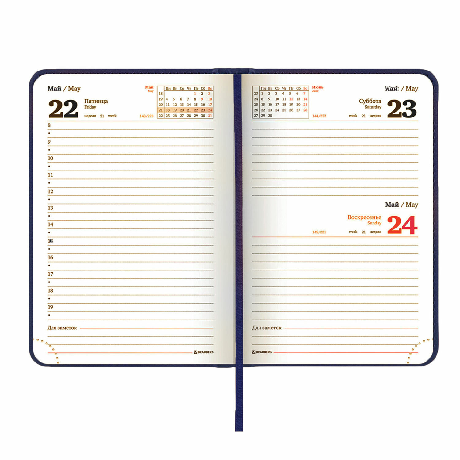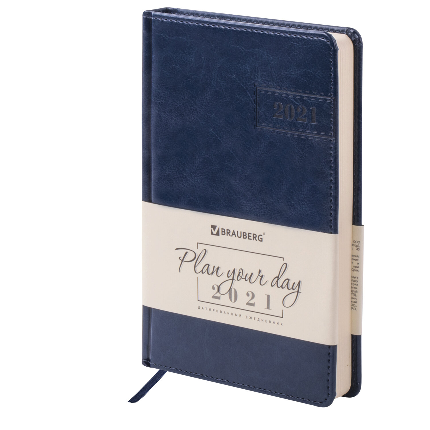 Ежедневник датированный 2021 А5 BRAUBERG "Imperial", кожзам, синий, 138*213 мм*