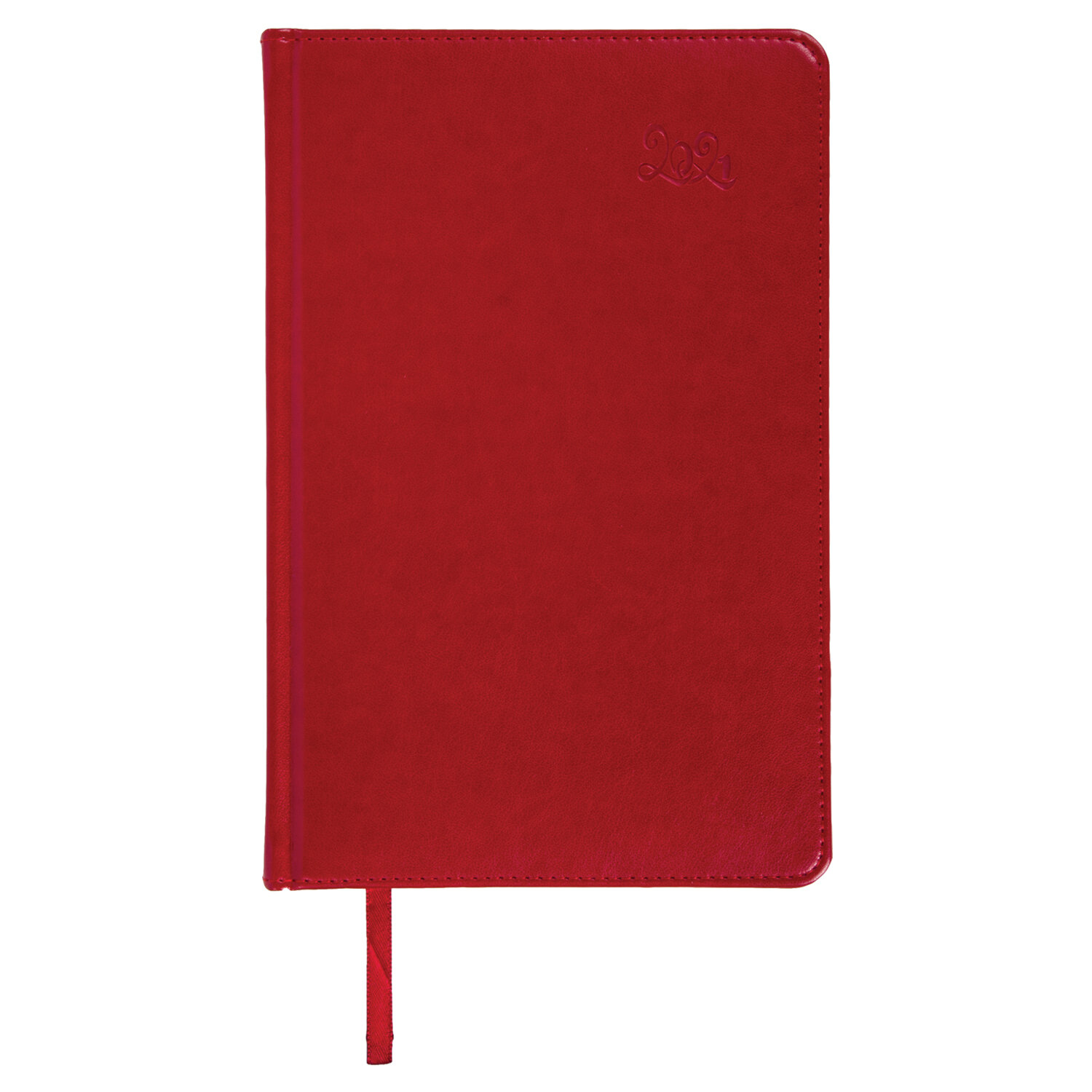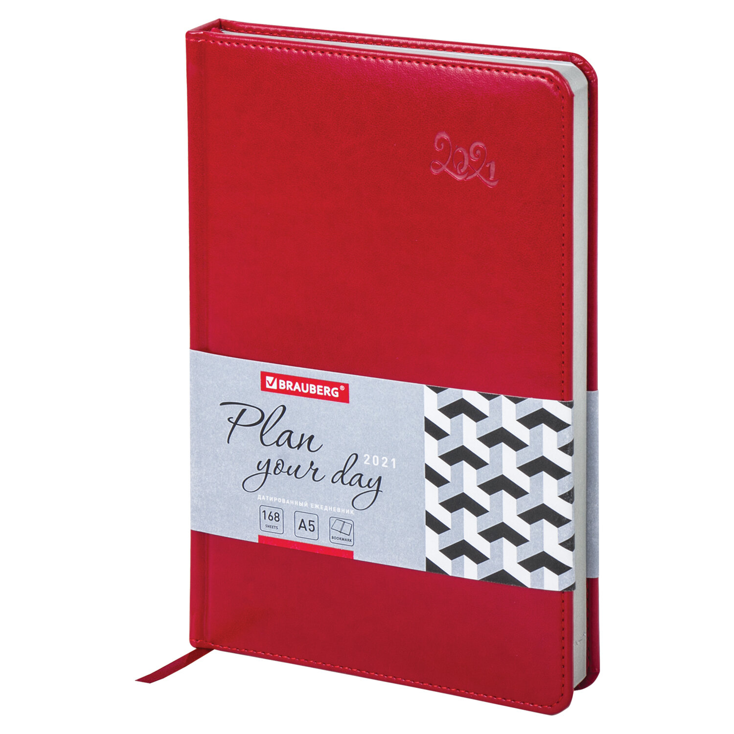 Ежедневник датированный 2021 А5 BRAUBERG "Rainbow", кожзам, красный, 138*213 мм*