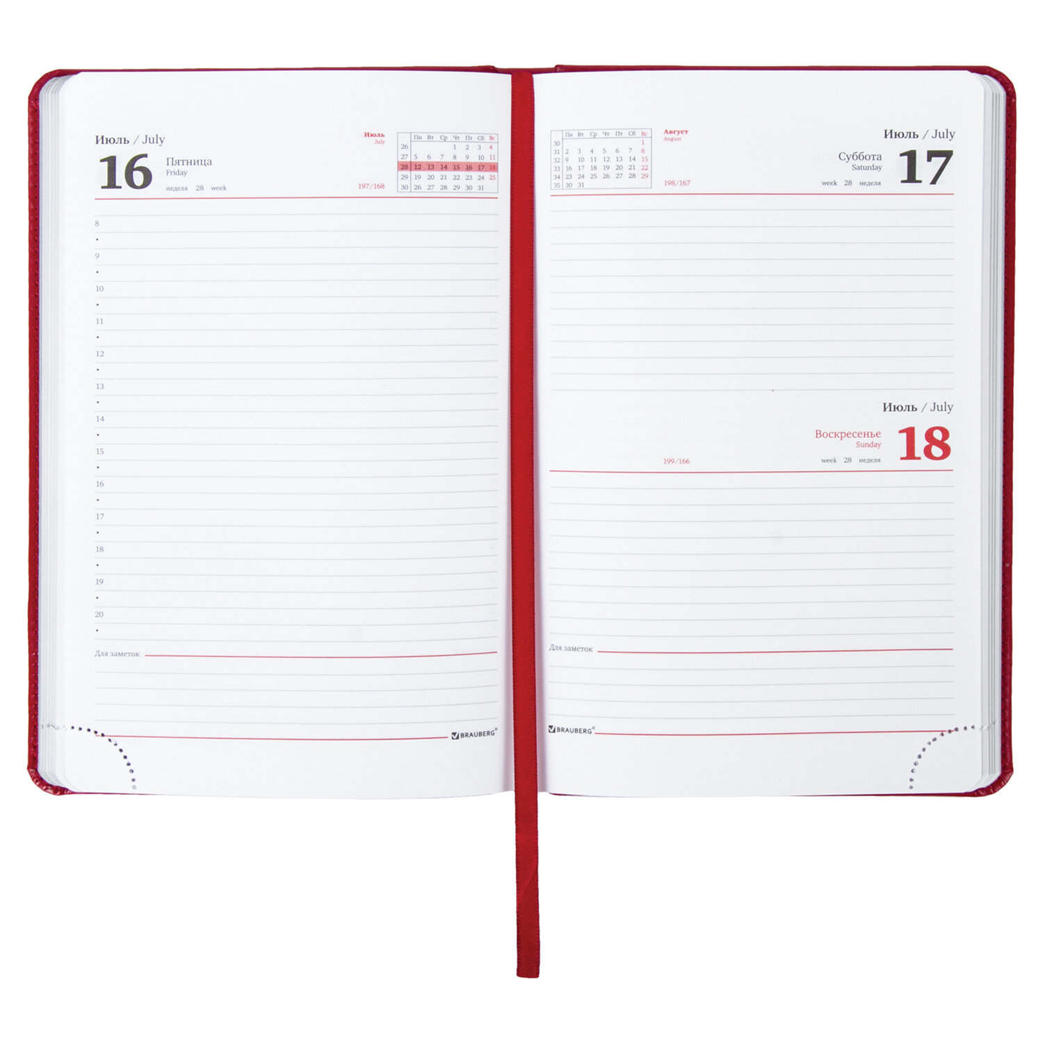 Внутренний блок включает 168 листов белой бумаги плотностью 70 г/м2. Каждая страничка имеет перфорированный угол. Благодаря стандартному формату А5 (138х213 мм) ежедневник удобно использовать как в офисе, так и на выездных деловых встречах.