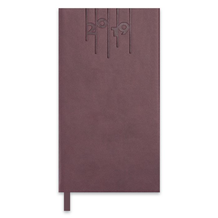 Удобный датированный еженедельник для повседневного пользования. Данный еженедельник имеет обложку из искусственной кожи "Виннер", на которой тиснением нанесена надпись "2019". К особенностям можно отнести его размер и функциональную закладку ляссе.