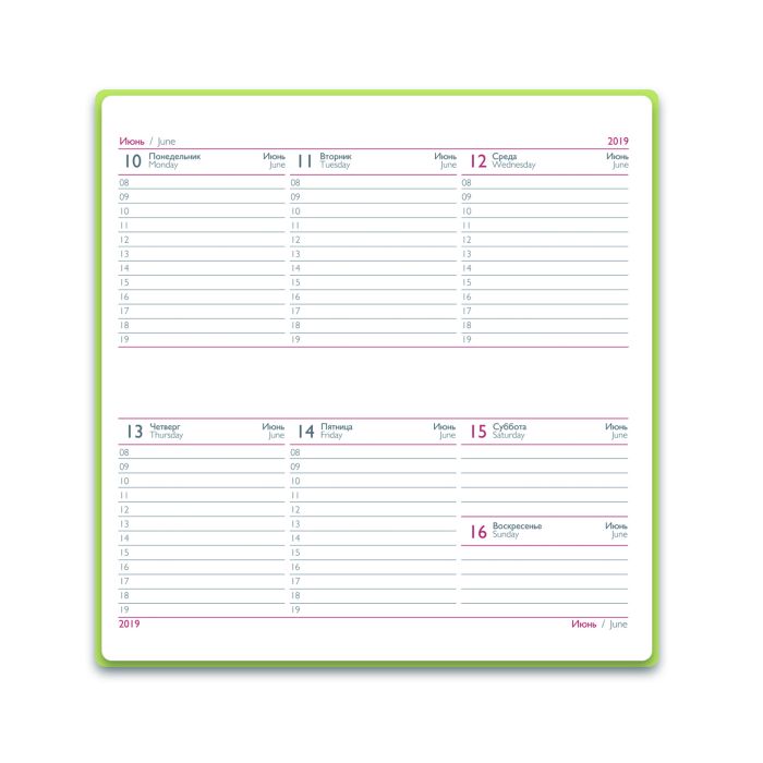Еженедельник 2019 датированный 64 листа 170*86 мм "Наппа салатовый металлик"