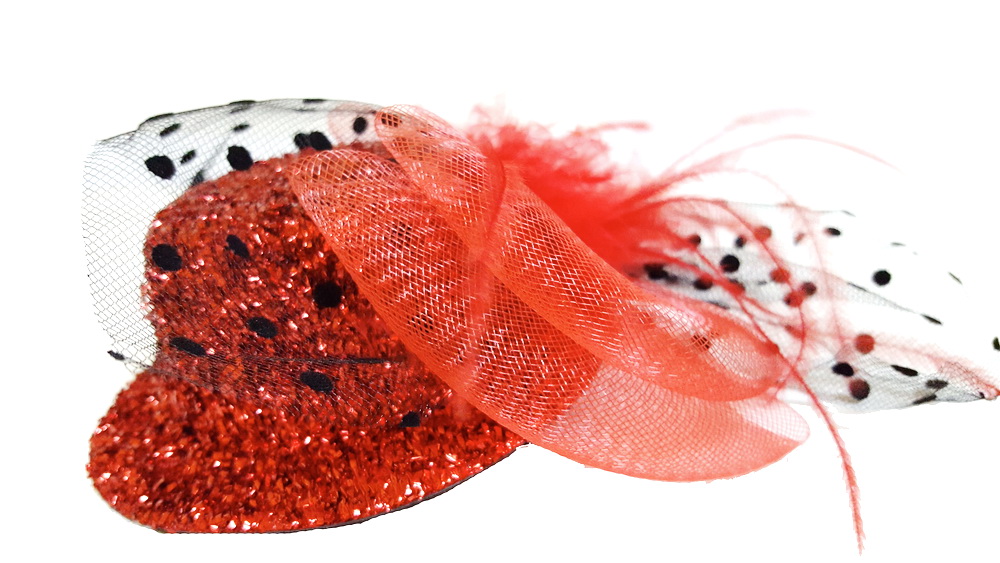 Шляпка оснащена вуалью и перром, крепится она с помощью двух зажимов.