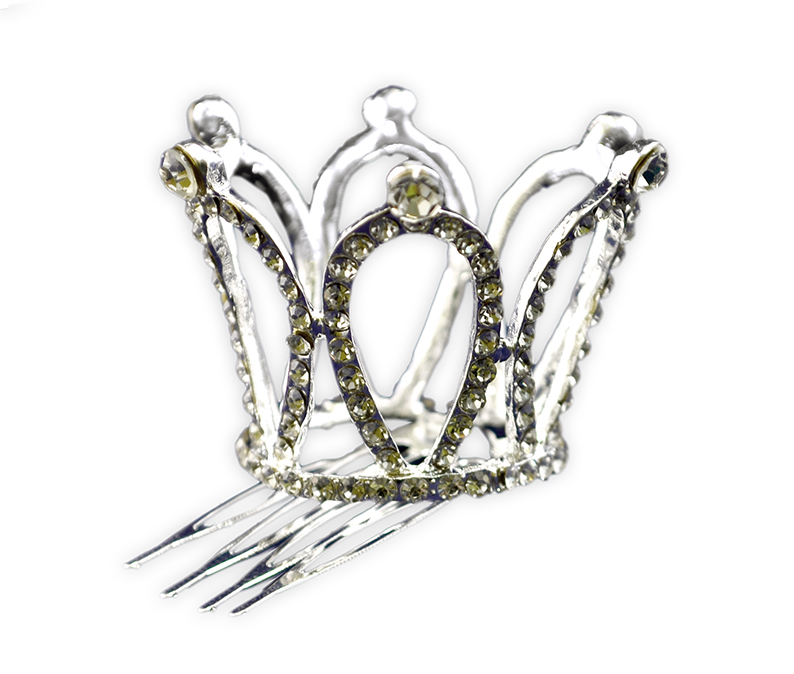 Корона d 3-4 см на металлической расческе с камнями, серебро