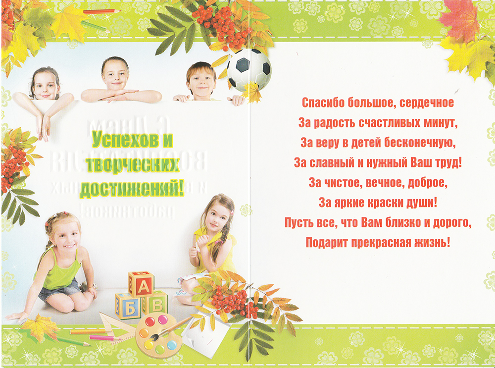 Красочная открытка с поздравлением в стихах. Красивый подарок ко Дню учителя, выпускному или к другим торжествам! Поздравление уже напечатано на внутренней стороне, Вам остается только подписать ее и вручить.