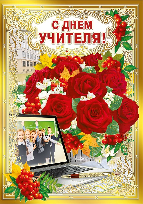 Красочная открытка с поздравлением в стихах. Красивый подарок ко Дню учителя! Поздравление уже напечатано на внутренней стороне, Вам остается только подписать ее и вручить.